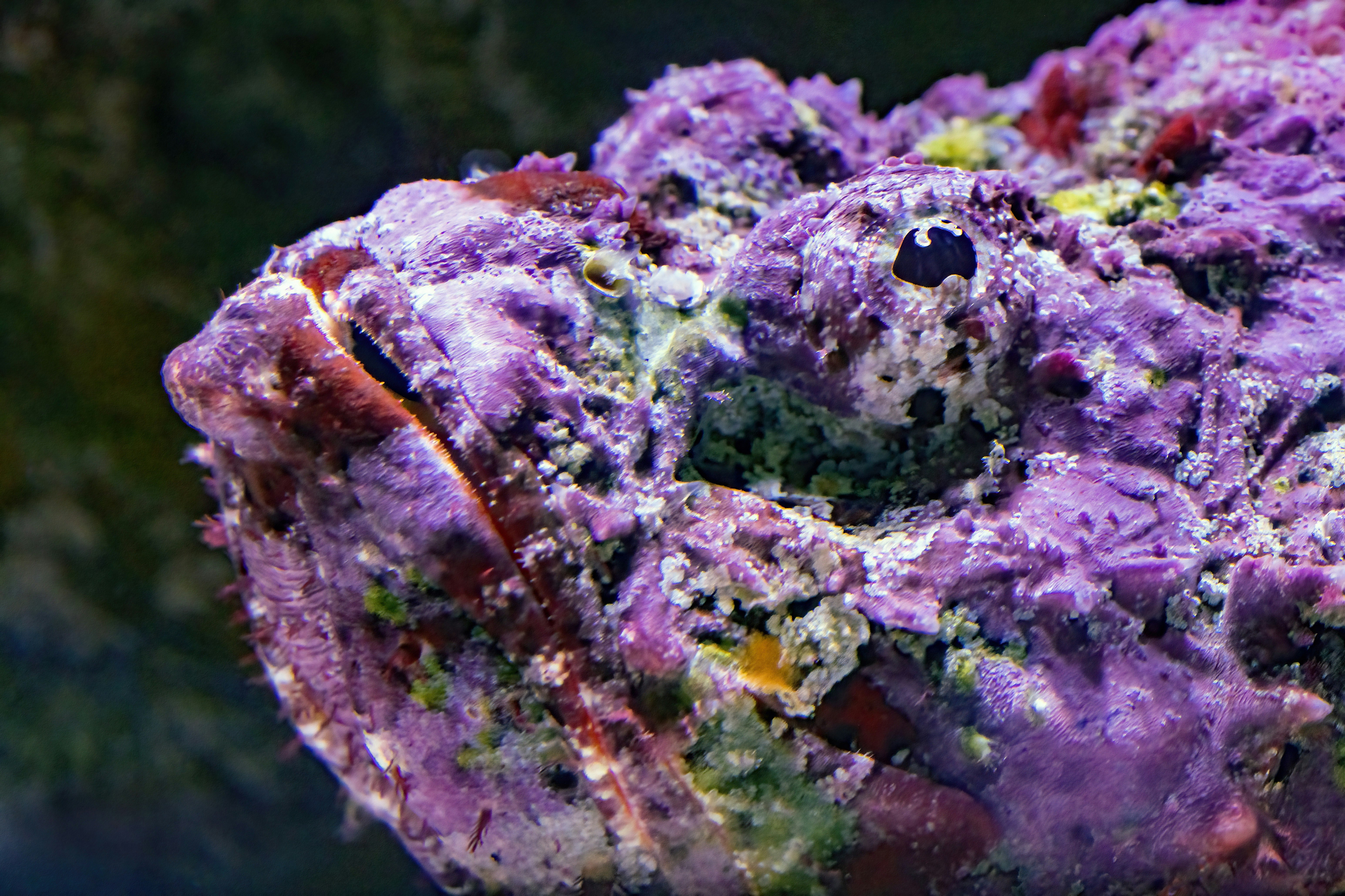 Un pro du camouflage, bien cacher au fond sur les rochers. Il est loin d’être le plus beau, mais il porte fièrement ses 13 épines venimeuses sur le dos. 💪